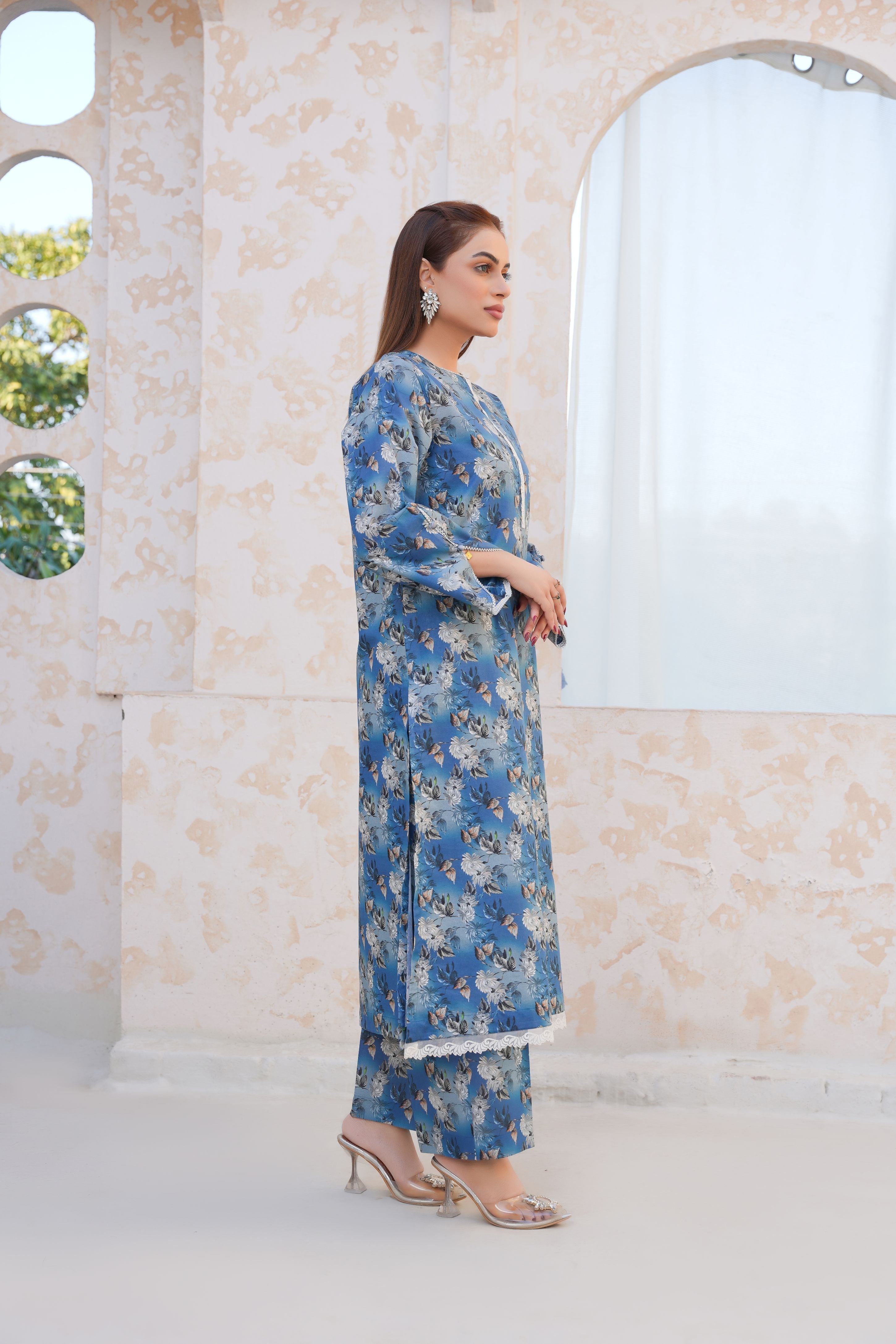 Threads & Weaves Stitched 2 Piece Lawn Collection'2025-Serene Blue Floral Lawn Suit-RTWL25101