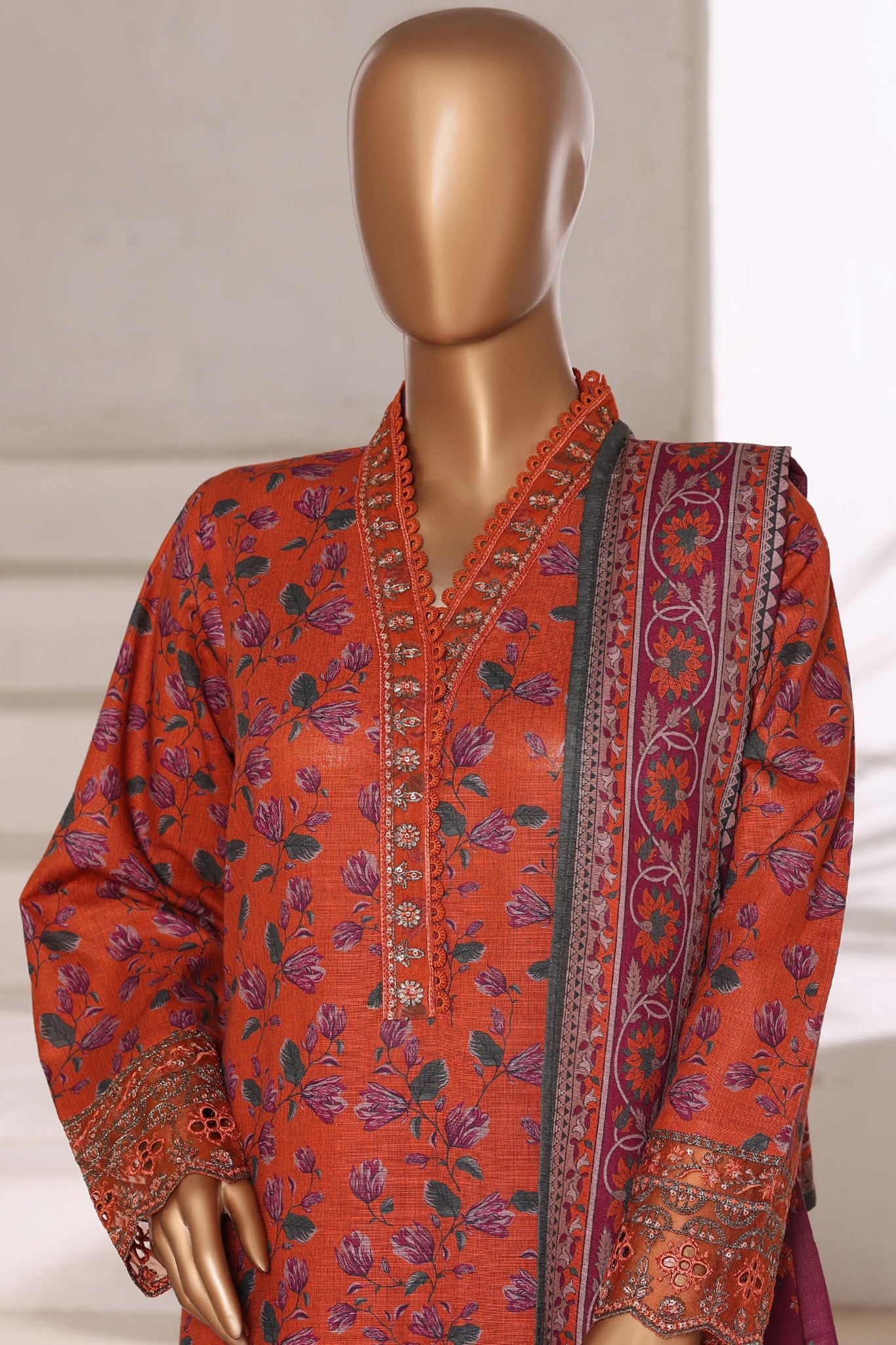 Malika By Sada Bahar Stitched 3 Piece Cutwork Khaddar Vol-01 Collection'2025-5755-Orange