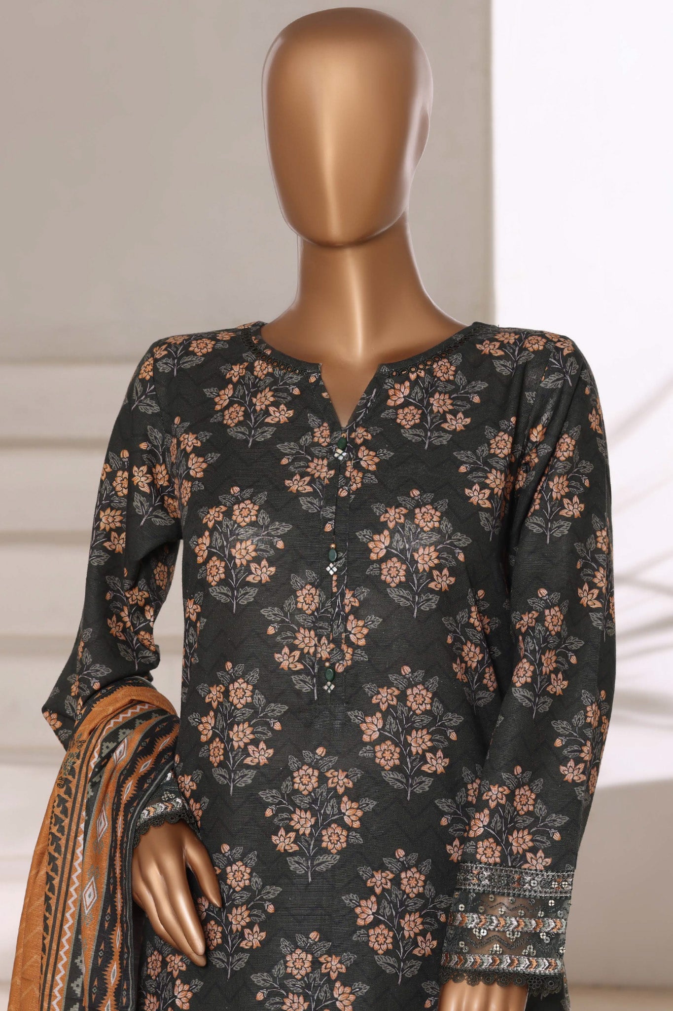 Malika By Sada Bahar Stitched 3 Piece Cutwork Khaddar Vol-01 Collection'2025-5761-Dark Green