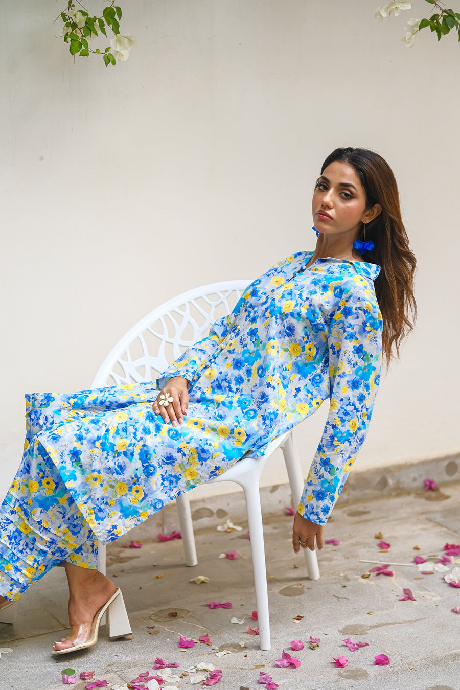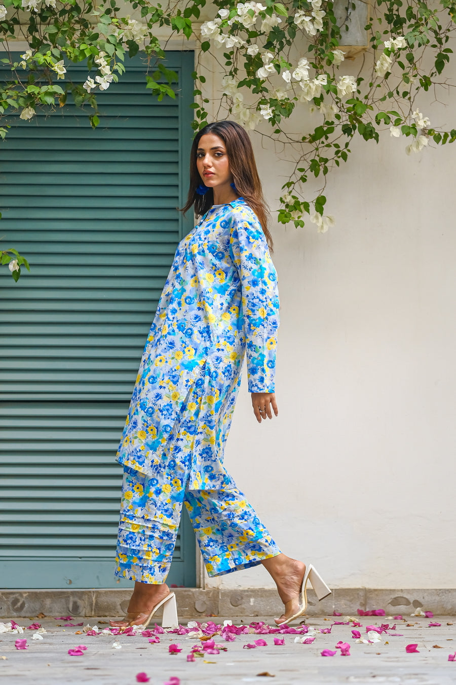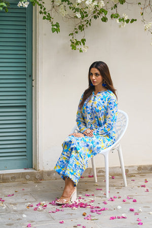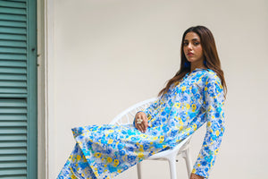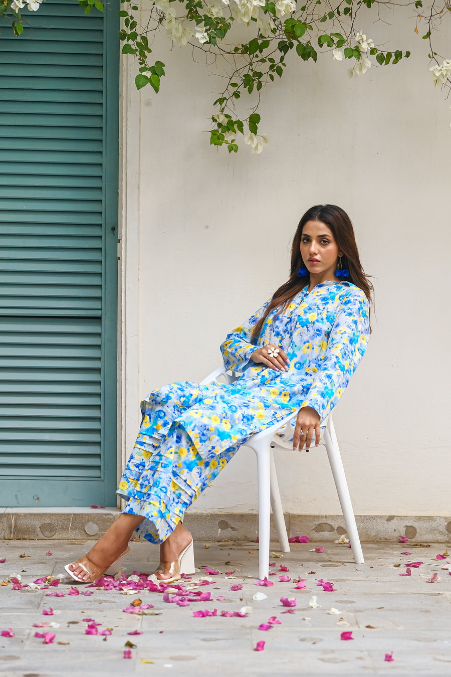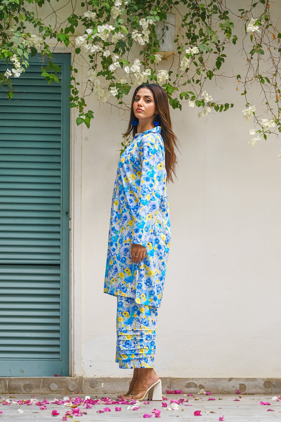 This royal blue cotton lawn outfit evokes the luxurious sparkle of a sapphire gemstone. The two-piece design offers a touch of elegance and a comfortable fit, perfect for summer occasions.