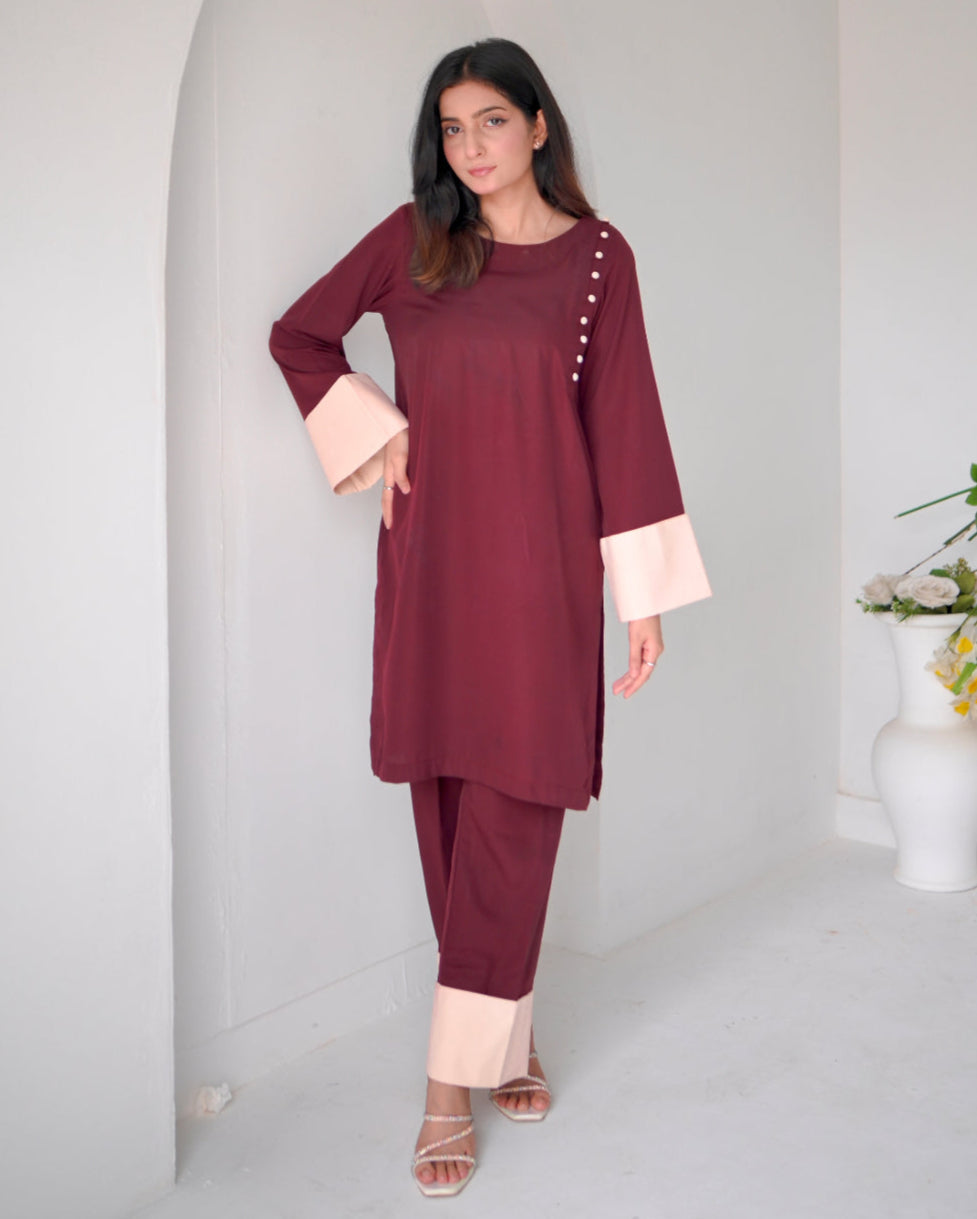 Zauk Stitched 2 Piece Collection-Scarlet Two Piece Dress