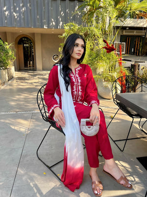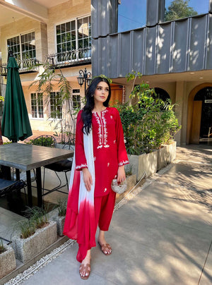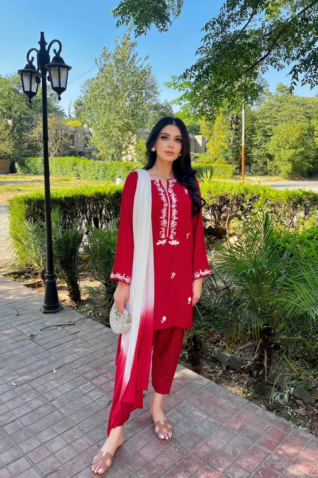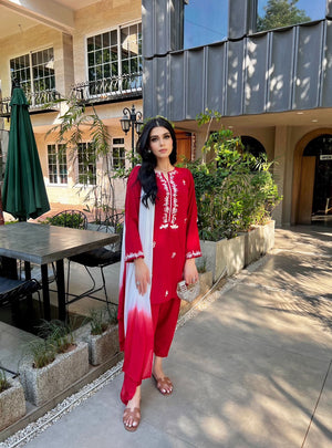 Zaman By MNM Stitched 3 Piece Winter Collection'2024-Scarlet
