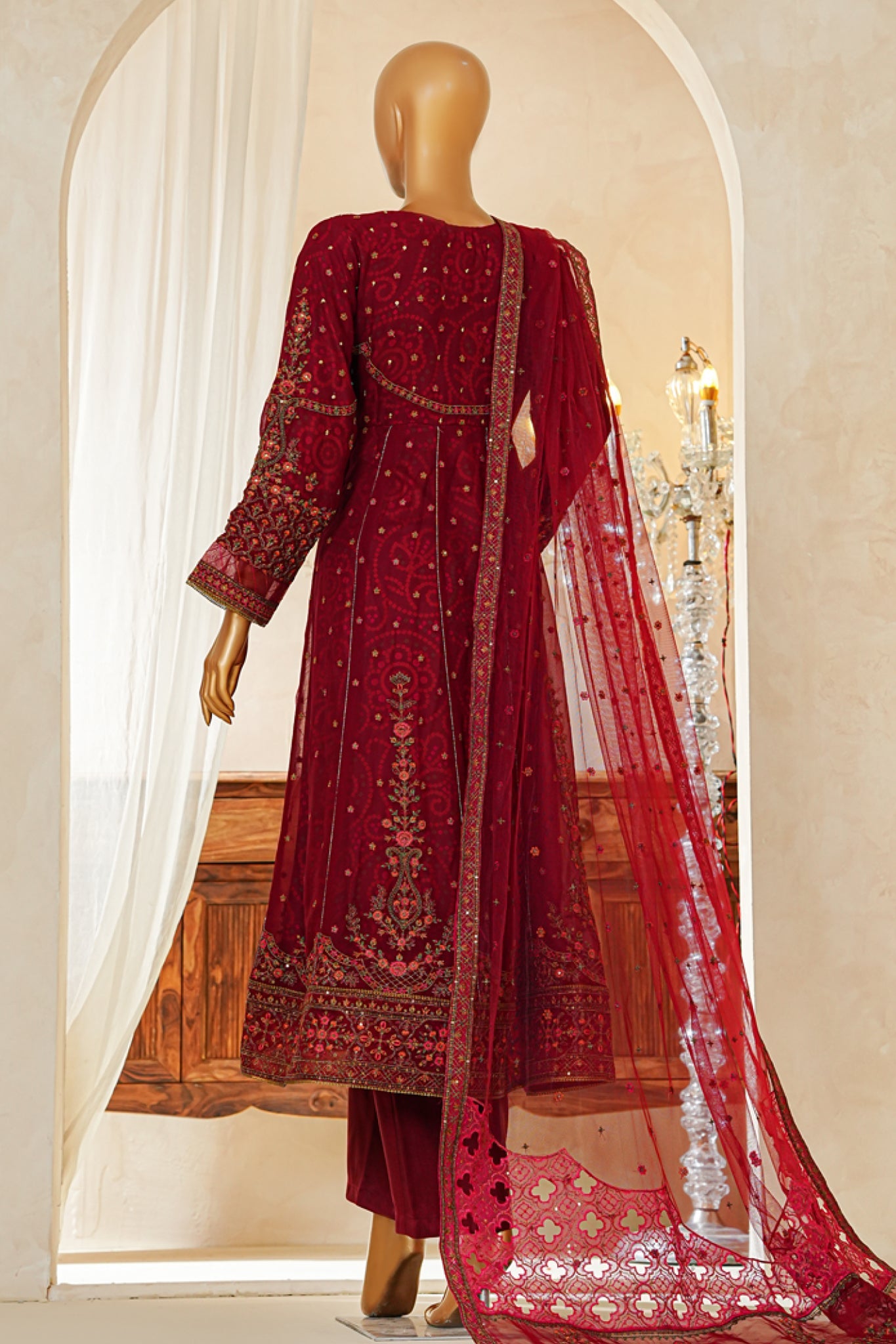 Shaadmaani By HZ Stitched 3 Piece Luxury Formals Collection'2025-HZK-213-Maroon