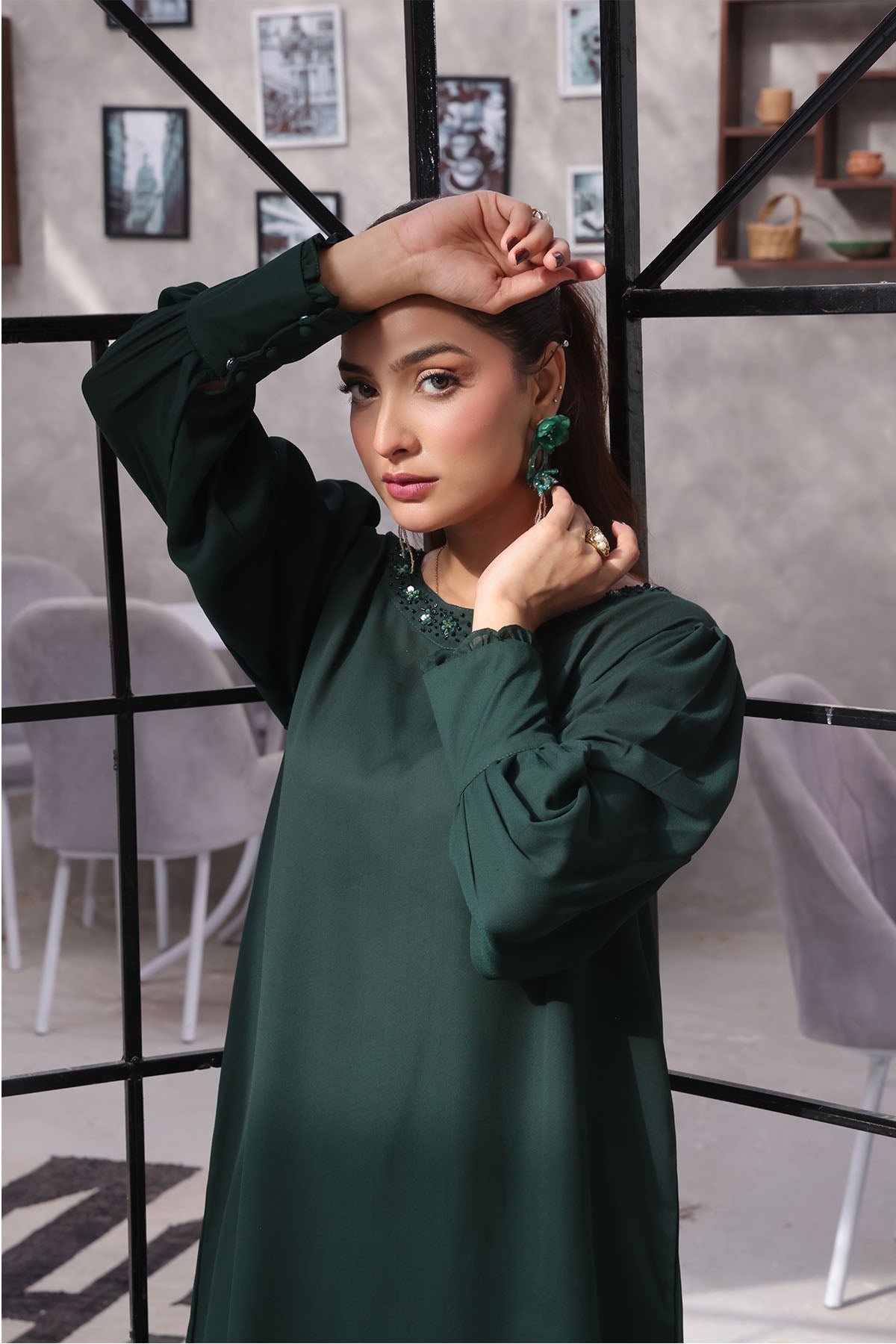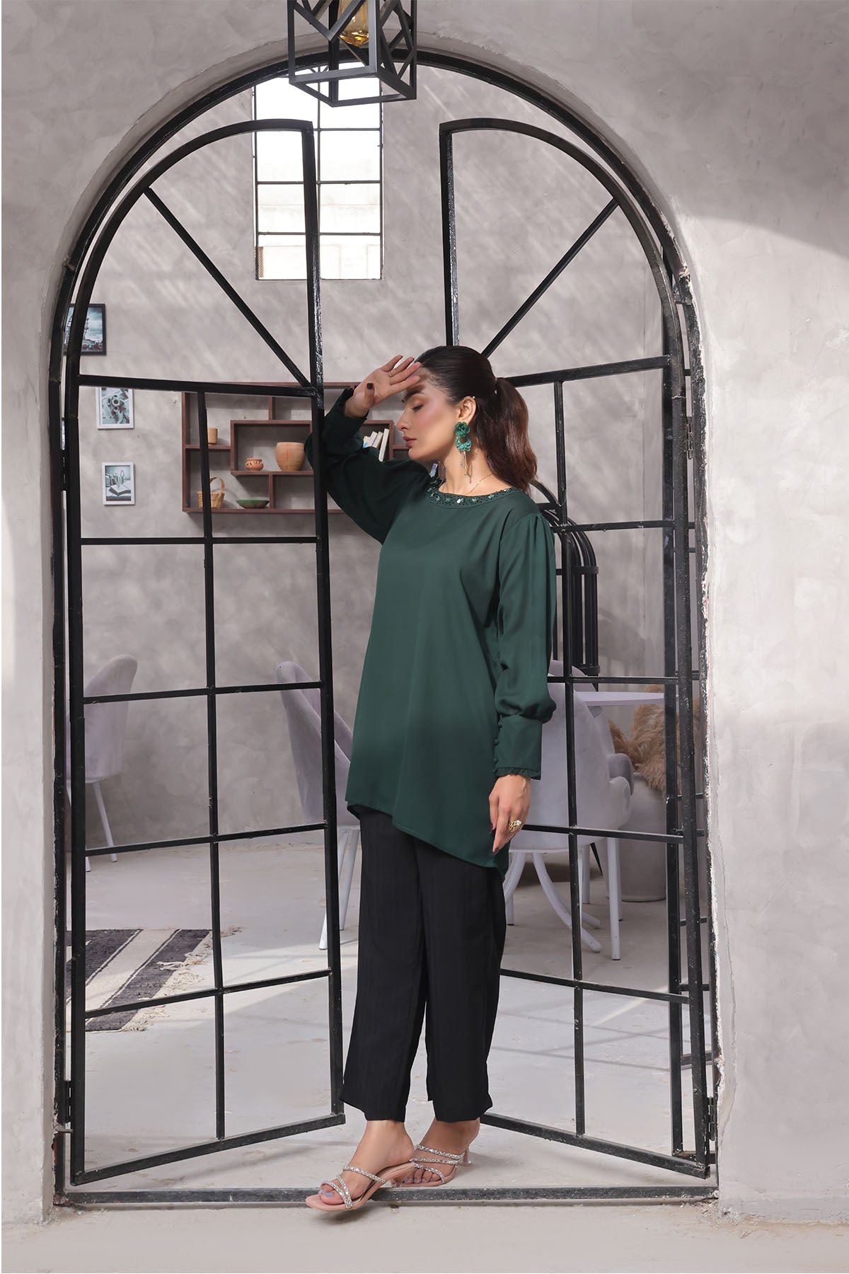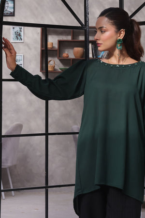 Top: Emerald Green Georgette Top With Hand Adda Work