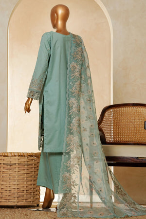Muse By HZ Stitched 3 Piece Emb Cotton Slub Vol-03 Collection'2025-SSE-203-Aqua