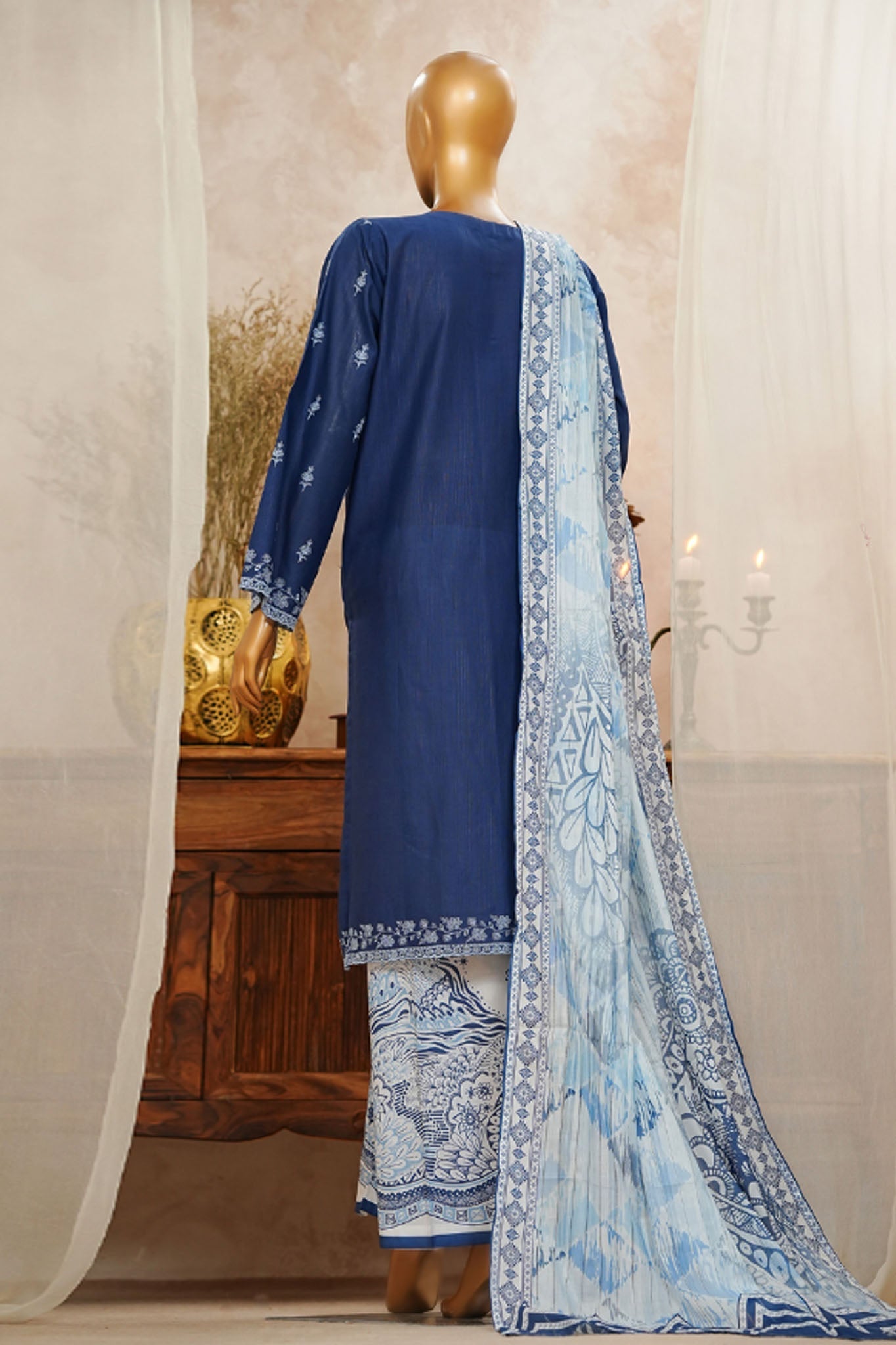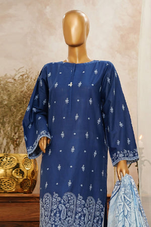 HZ Stitched 3 Piece Solid Emb Chikankari Collection'2025-SSPE-3P-003-NAVY