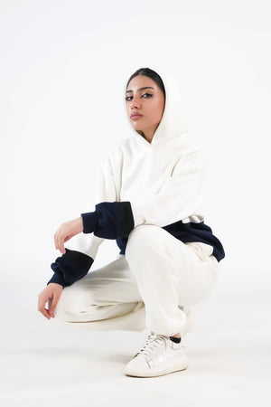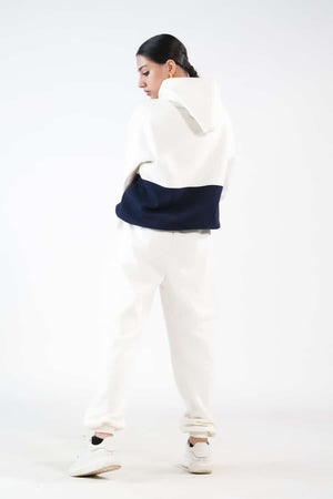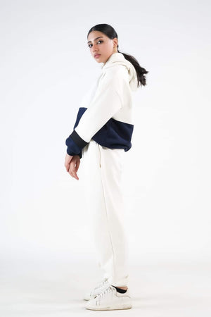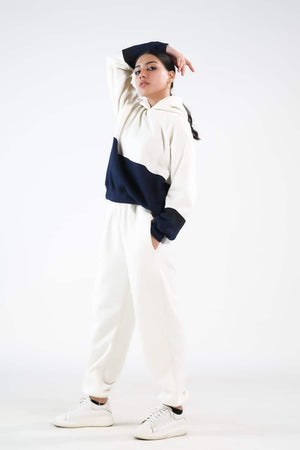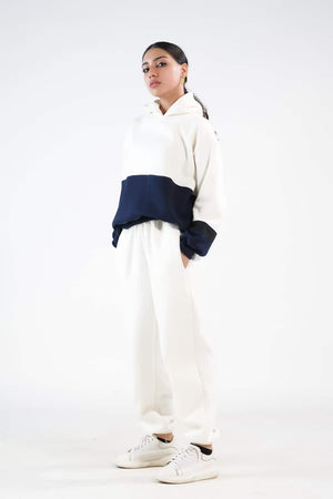 Sprinkles Stitched 2 Piece Winter Co Ord Sets Women Collection'2025-Stripy Ecru/Navy Blue - 2pcs?Co-Ord?Set