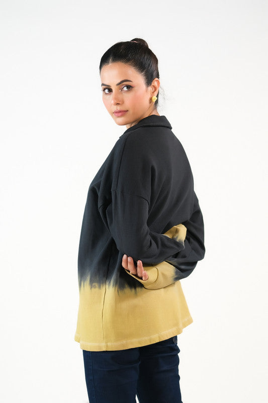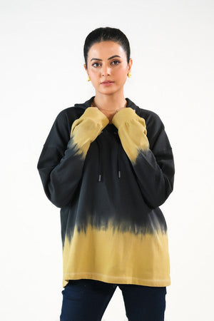 Sprinkles Stitched 1 Piece Winter Shirts Women Collection'2025-Tie Dye Lace Up  Hoodie - Black