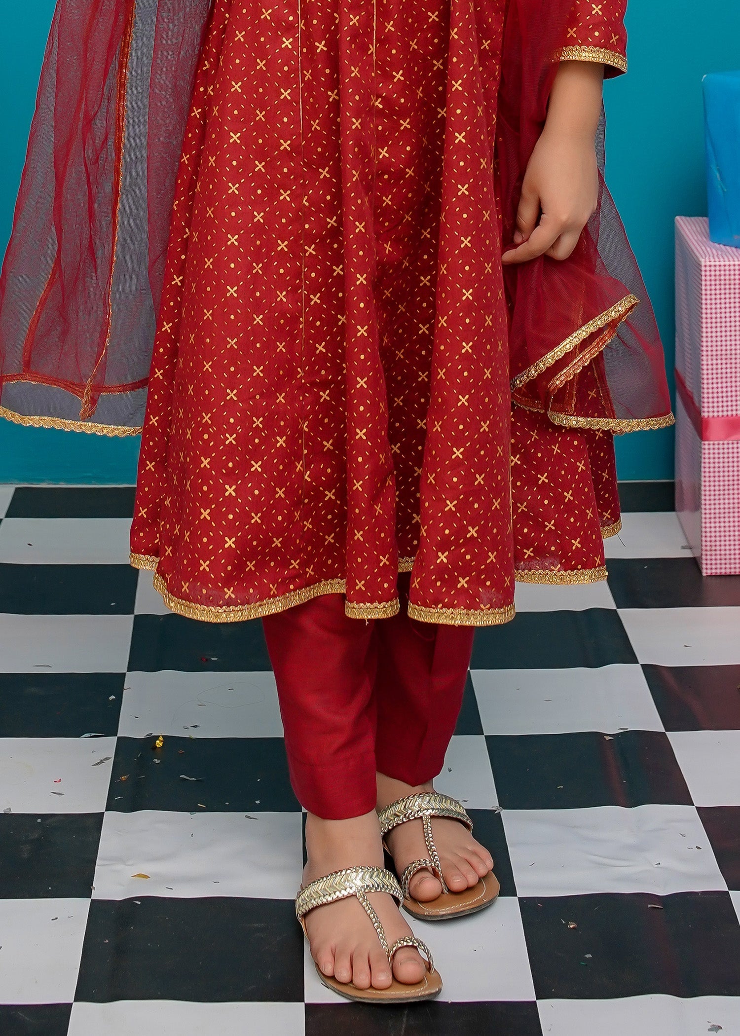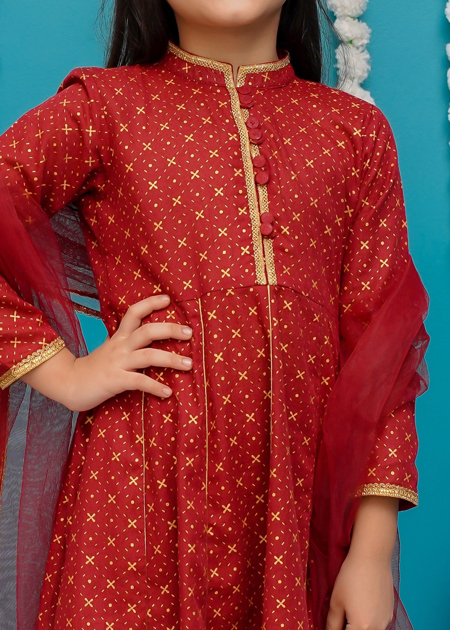 Elevate your toddler's festive wardrobe with our charming 3 piece?cotton frock set, Perfect for Eid celebrations.