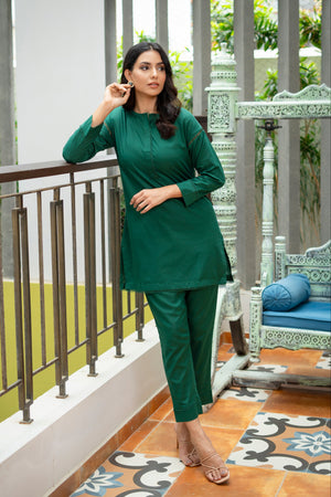 Umeed is a premium cotton green two-piece coord that embodies optimism and renewal. This solid green dress symbolizes hope and the promise of new beginnings.