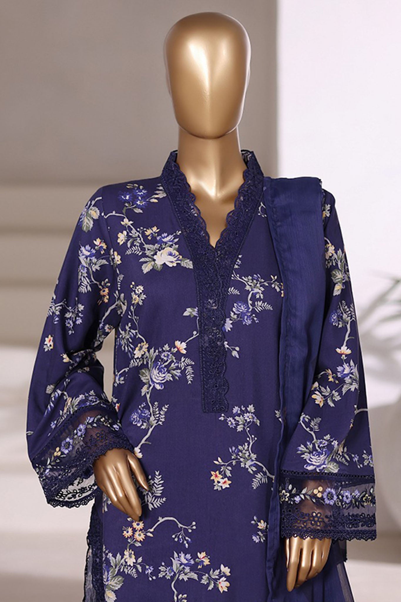 Malika By Sada bahar Stitched 3 Piece Viscose With Farshi Shalwar Vol-01 Collection'2025-VCK-543-Navy Blue