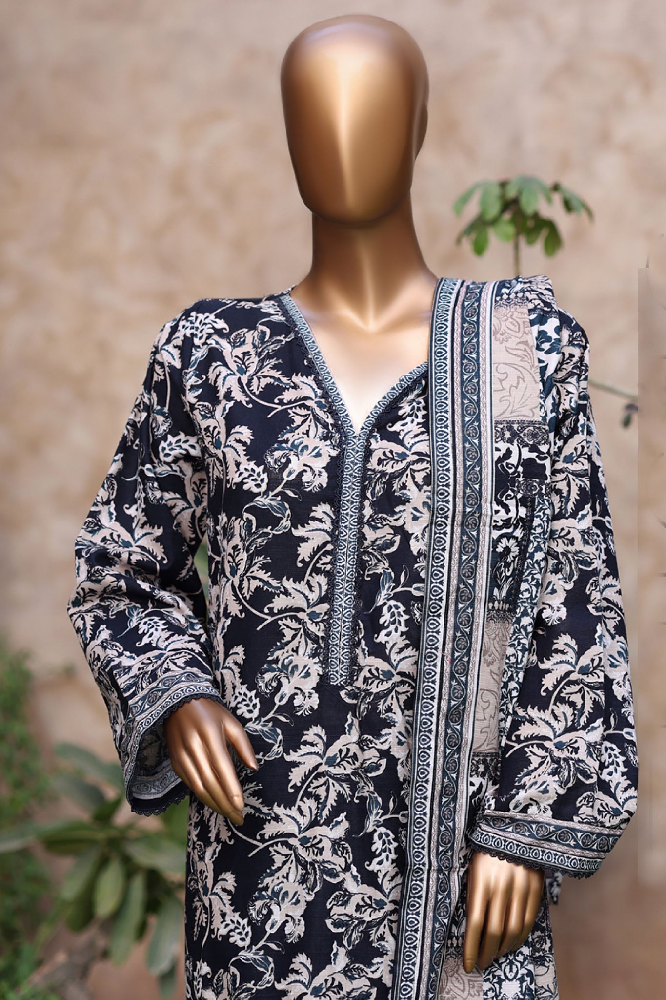 Bin Saeed Stitched 3 Piece Exclusive Printed Khaddar Vol-04 Collection'2025-WK-2393-Black