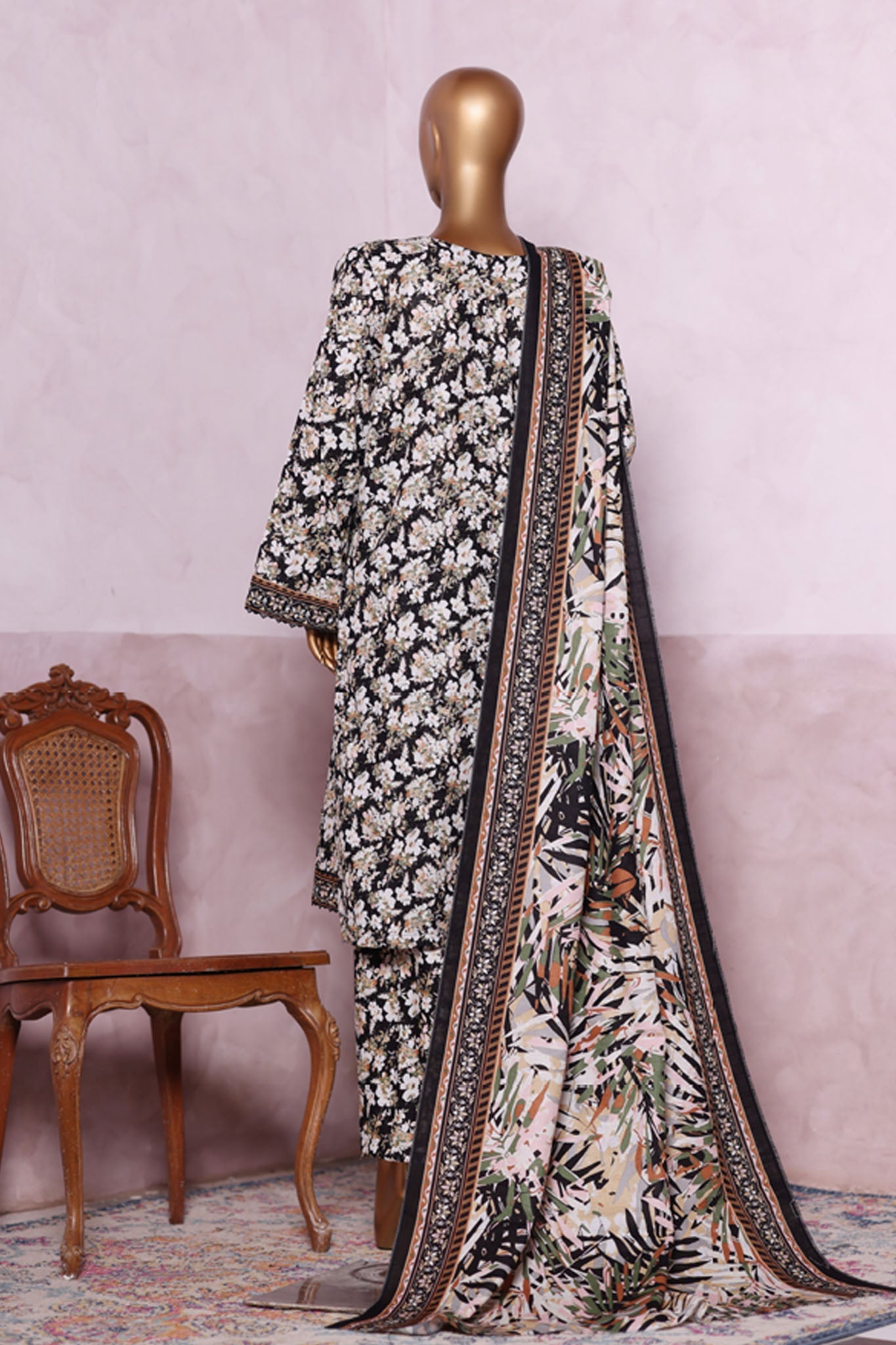Bin Saeed Stitched 3 Piece Exclusive Printed Khaddar Vol-06 Collection'2025-WK-2449-Black