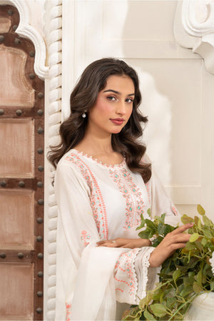 Additional Description: “Grace in every detail—this 3-piece embroidered ensemble features a delicate cotton net shirt adorned with intricate embroidery, laces, and elegant buttons at the neckline. Paired with a beautifully embroidered trouser with lace accents and a dreamy organza dupatta with embroidery and pleats, this outfit is the perfect blend of elegance and sophistication.”ACTUAL COLOR MAY VARY FROM THE PICTURE.