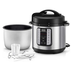 The PCP1000-B5 is a versatile 7-in-1 electric pressure cooker from Black & Decker. With a 6.0L capacity, it’s designed to cook for up to 8 people. It features a 1000W power for a versatile cooking experience and a premium brushed stainless-steel housing for a decorative aesthetic.