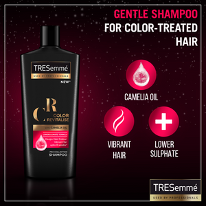 Tresemme Shampoo Color Revitalize - 170ML is a color-protecting solution that revitalizes and promotes vibrant, long-lasting color. This advanced shampoo helps to reduce color fading by up to 80%, whilst adding shine to hair. It is enriched with green tea extract and sunflower seed oil to leave hair healthy-looking and protected.