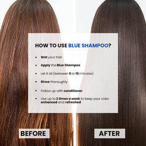- Alternate between your regular shampoo and Blue Shampoo for the best results.