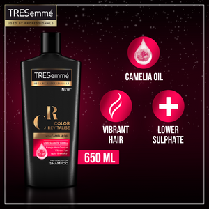 Tresemme Shampoo Colour Revitalize - 650ML is a colour-protecting solution that revitalises and promotes vibrant, long-lasting colour. This advanced shampoo helps to reduce colour fading by up to 80%, whilst adding shine to hair. It is enriched with green tea extract and sunflower seed oil to leave hair healthy-looking and protected.