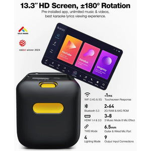 - 13.3" Rotating Touchscreen: Full HD display for lyrics, apps, and controls.