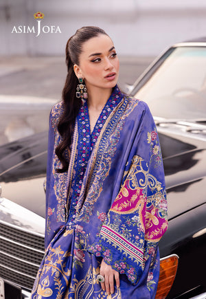 Asim Jofa Charmeuse Silk Ajrs-06 Digitally Printed Embroidered Blended Silk 1 Pc