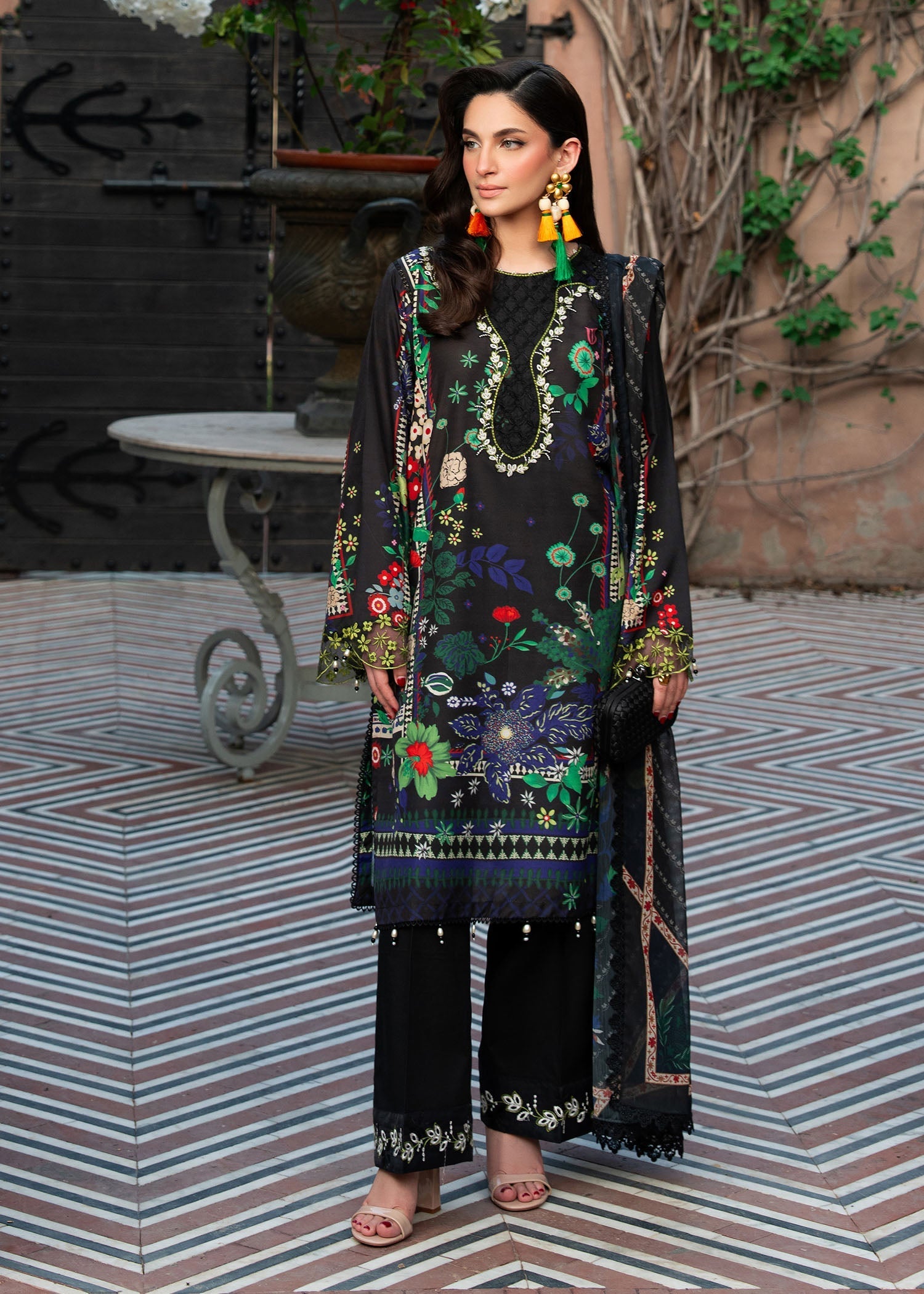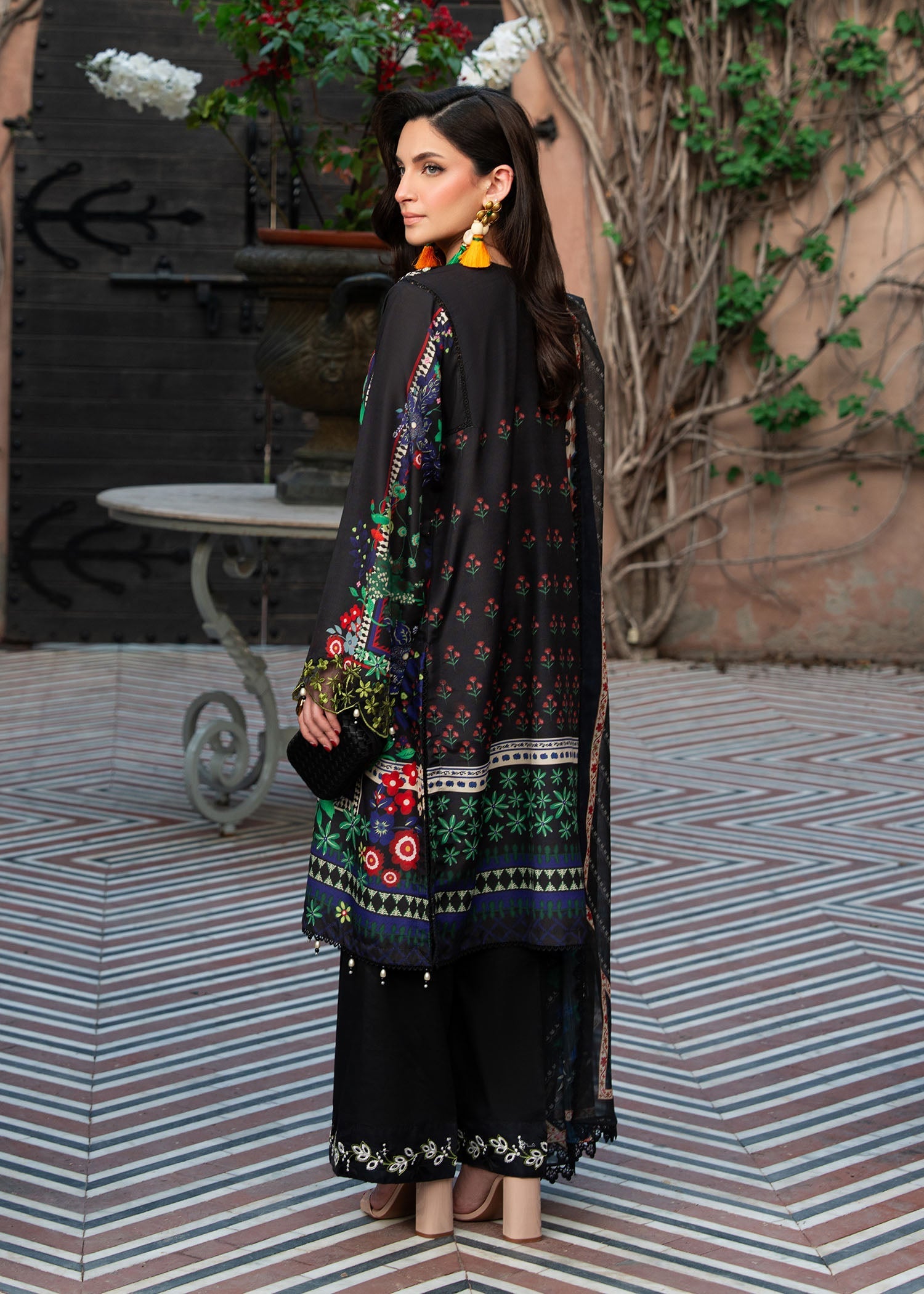 • Printed chiffon dupatta measuring 2.5 meters
