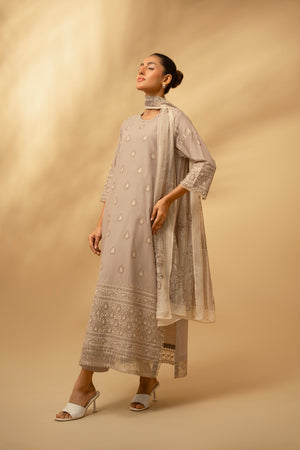Zouj Unstitched 3 Piece Chikankari Lawn Edit Suit-Frosted Silver