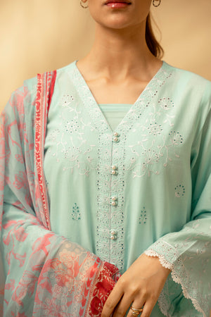 Zouj Unstitched 3 Piece Chikankari Lawn Edit Suit-Glacier Blue