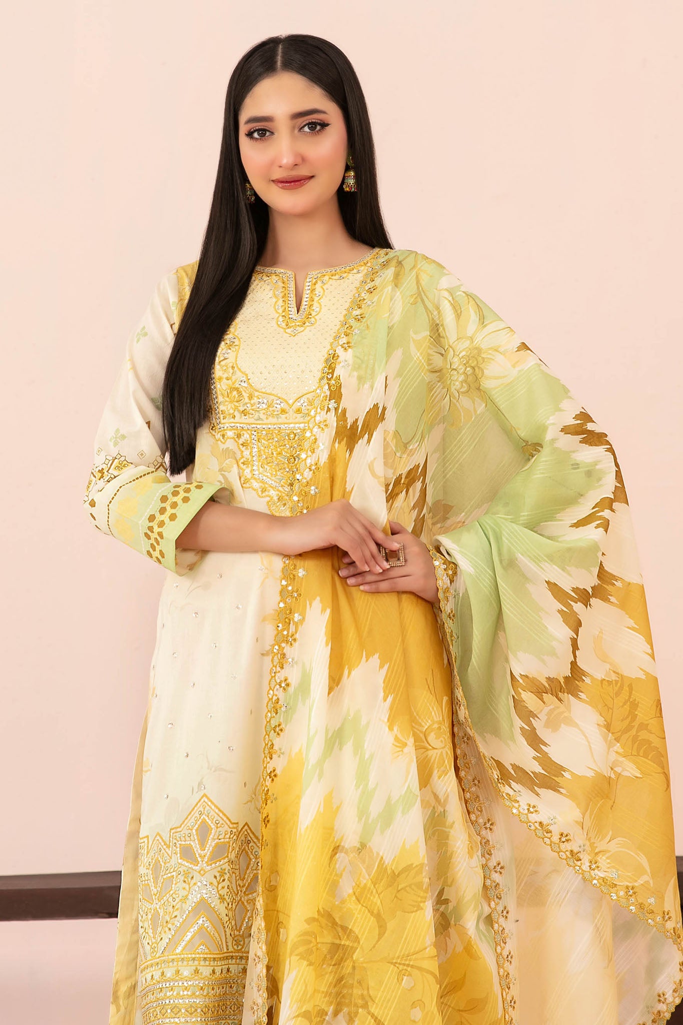 - Cutwork Embroidered Digital Printed Slub Lawn Dupatta