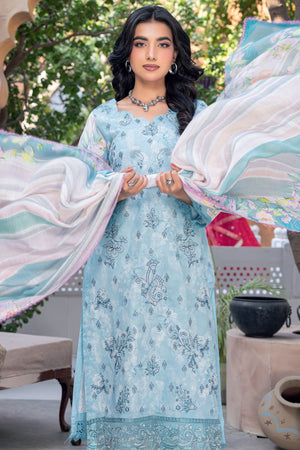 - Digital Print Embroidered Lawn Shirt With Digital Print Diamond Slub Dupatta