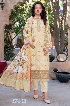 - Digital Print Embroidered Lawn Shirt With Digital Print Diamond Slub Dupatta