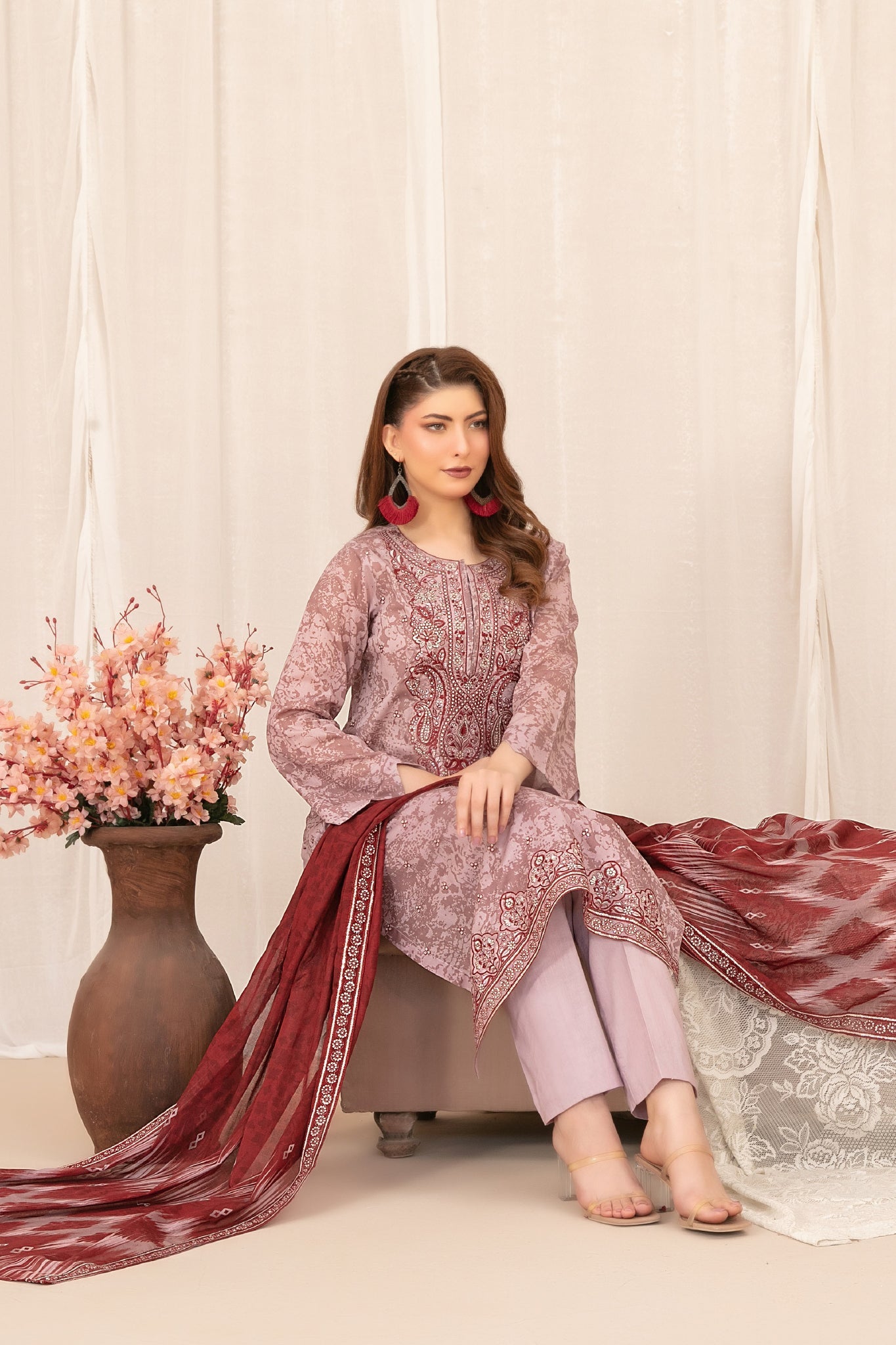 - Cutwork Embroidered Digital Printed Lawn Dupatta