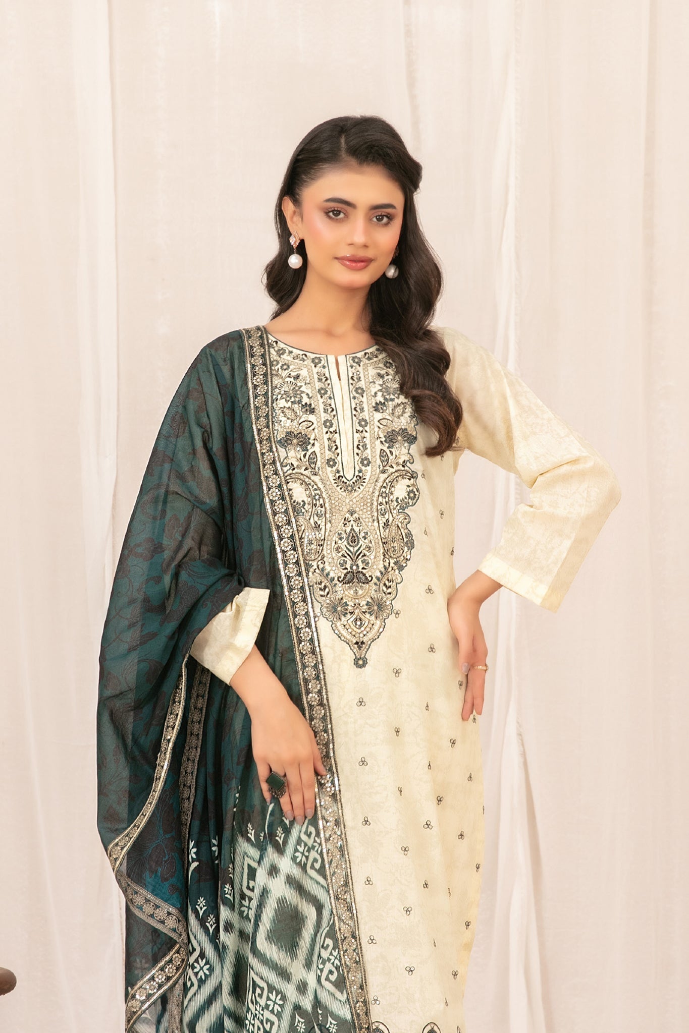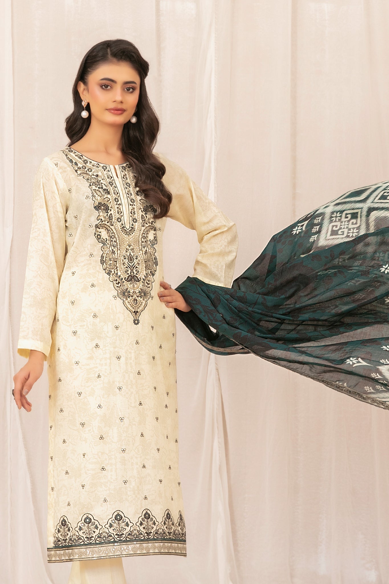 - Cutwork Embroidered Digital Printed Lawn Dupatta