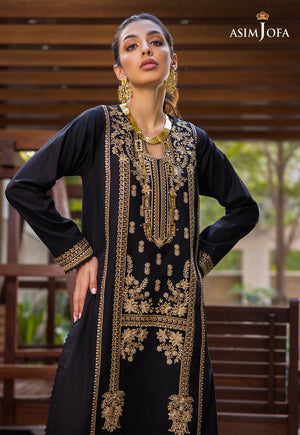 This classic number from Essential collection is a striking black cambric shirt adorned with luminous embroidery that catches the light just so. The embroidered center panel on the front commands attention, while the side panels and sleeve borders add a delicate touch of elegance. The intricate daman border on both the front and back creates an alluring silhouette, making this piece an absolute must-have for the fashion-conscious. The plain dyed cambric for the back and sleeves perfectly balances the embroidery and gives it a modern edge. Ooze poise with Asim Jofa.