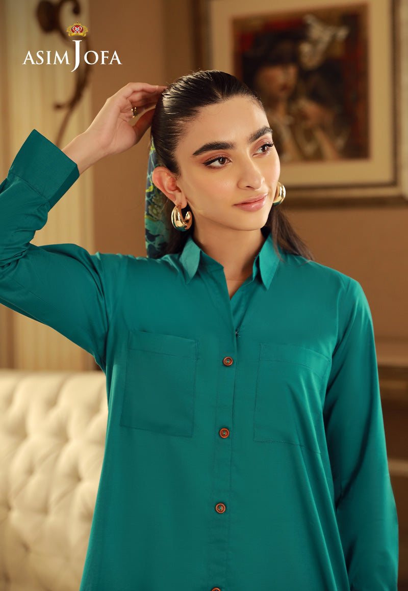 Embrace a touch of modernity with this teal green shirt. The bold color adds a pop of energy to your look. The stylish cut and trendy details make it perfect for the fashion-forward woman.ÂÂ