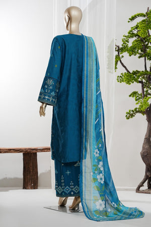Bin Saeed Stitched 3 Piece Luxury Jacquard Vol-01 Suit-JAQ-2931-BLUE