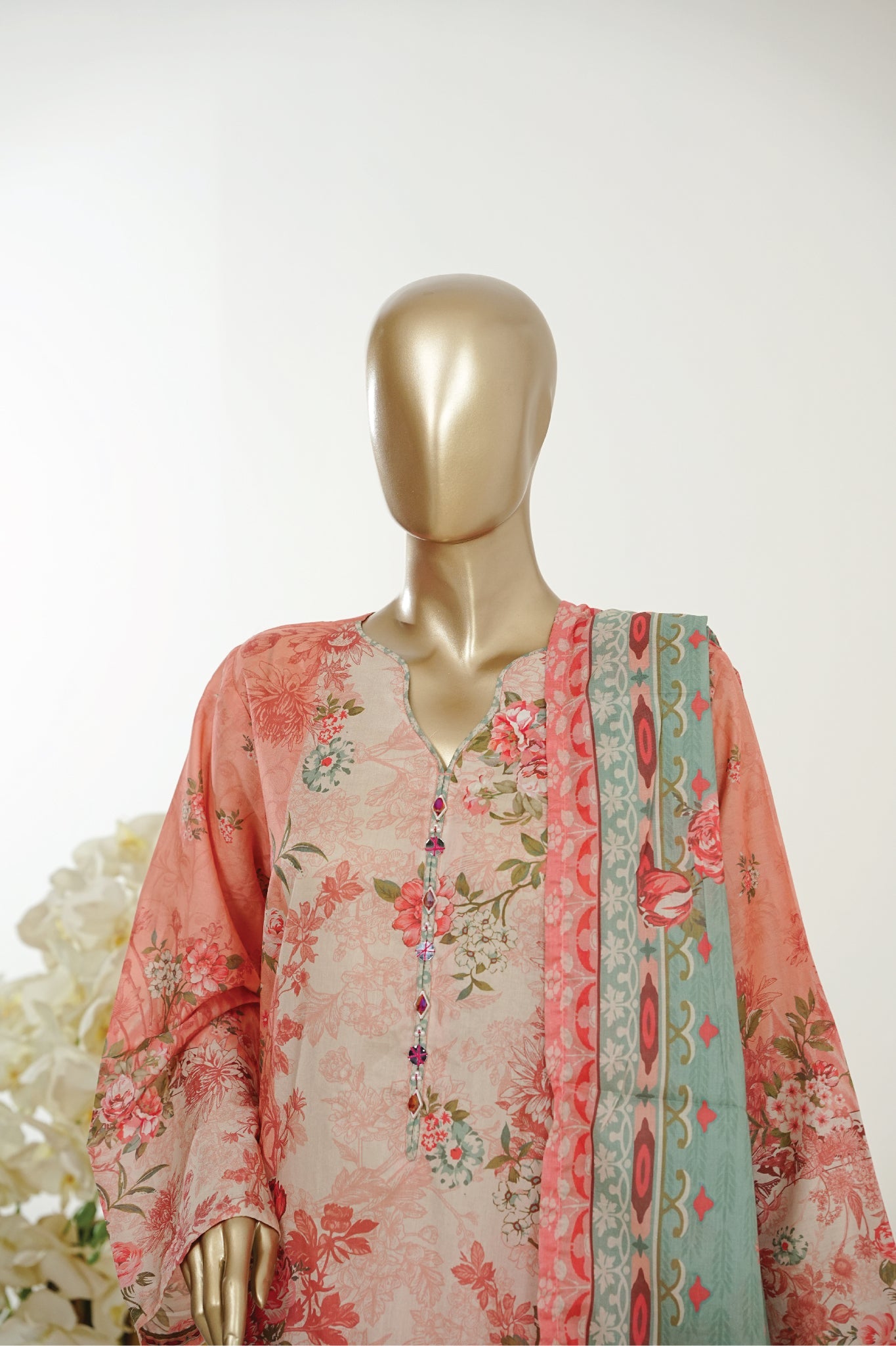 Bin Saeed Stitched 3 Piece Exclusive Printed Lawn Vol-10 Suit-LSM-2945-PEACH