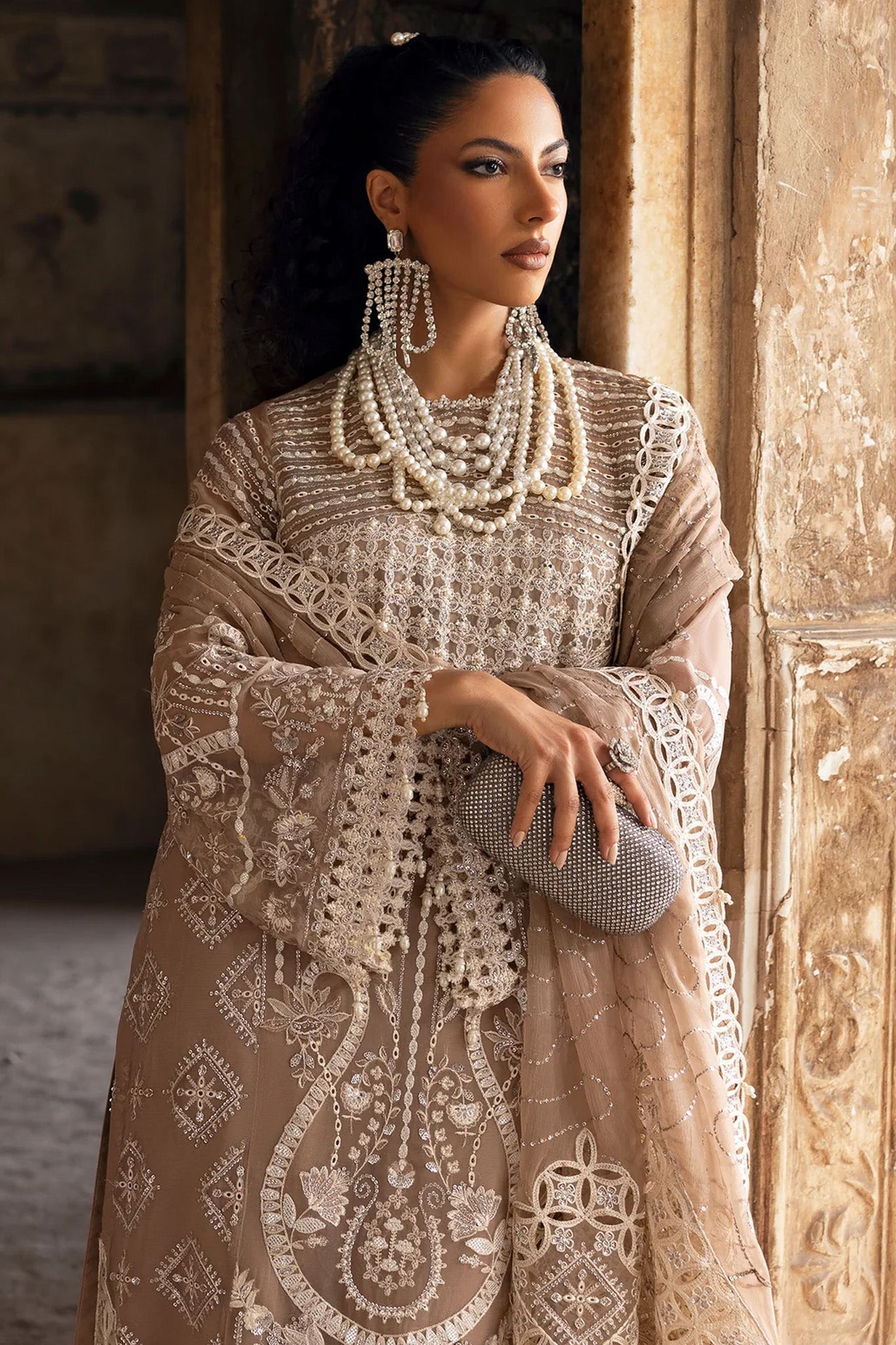 - Embroidered Organza Neckline Front With Luxury Hand Embellishment