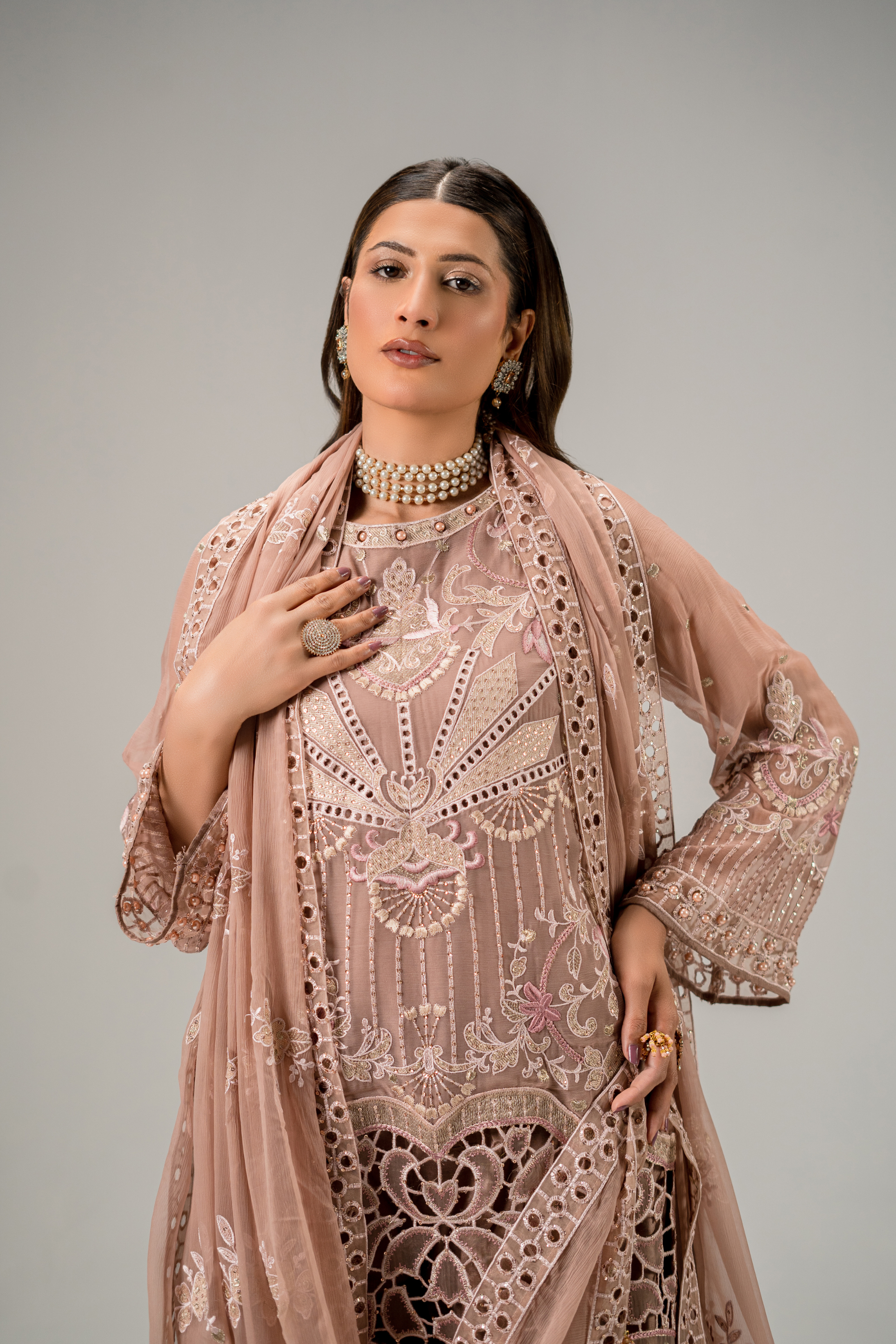 Embroidered chiffon front with l/r panal 1 yds