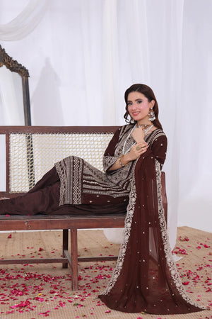Semi Stitched Embroidered Luxury Chiffon Shirt With Adda Takkai Hand Embellishment Front!