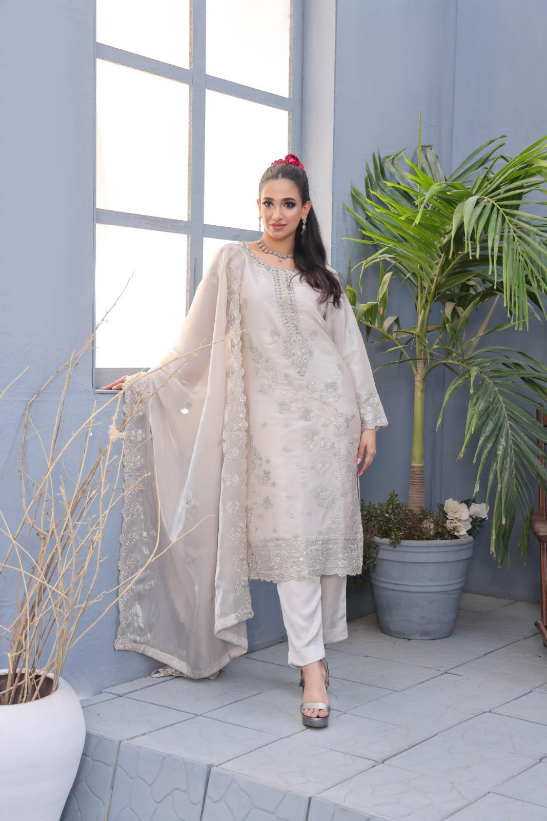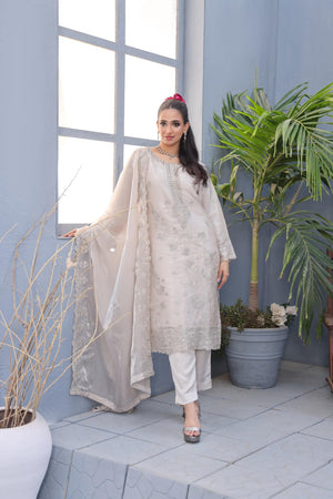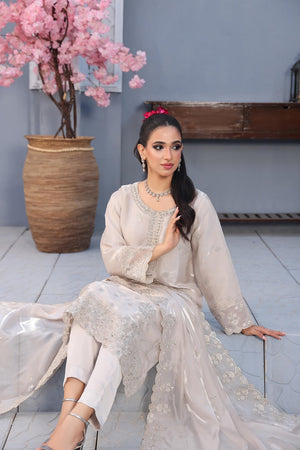 Unstitched Dyed Fancy Embroidered Sheesha Silk With Hand Embalishments Front