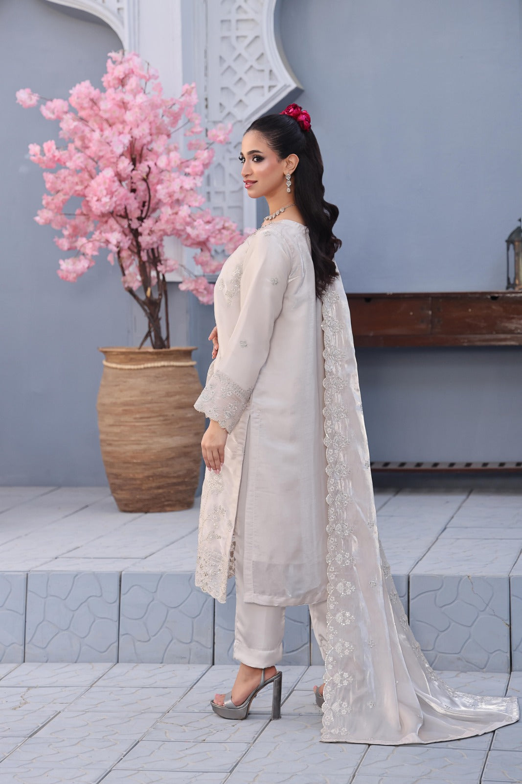 Fancy Dyed Embroidered Sheesha Silk Dupatta