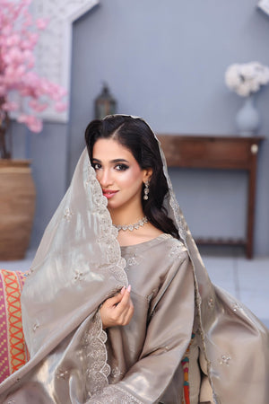 Unstitched Dyed Fancy Embroidered Sheesha Silk With Hand Embalishments Front
