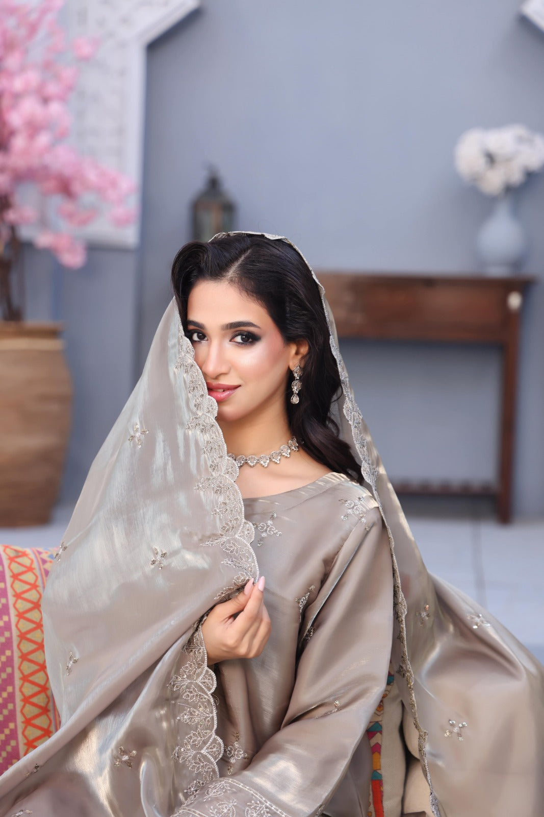 Fancy Dyed Embroidered Sheesha Silk Dupatta