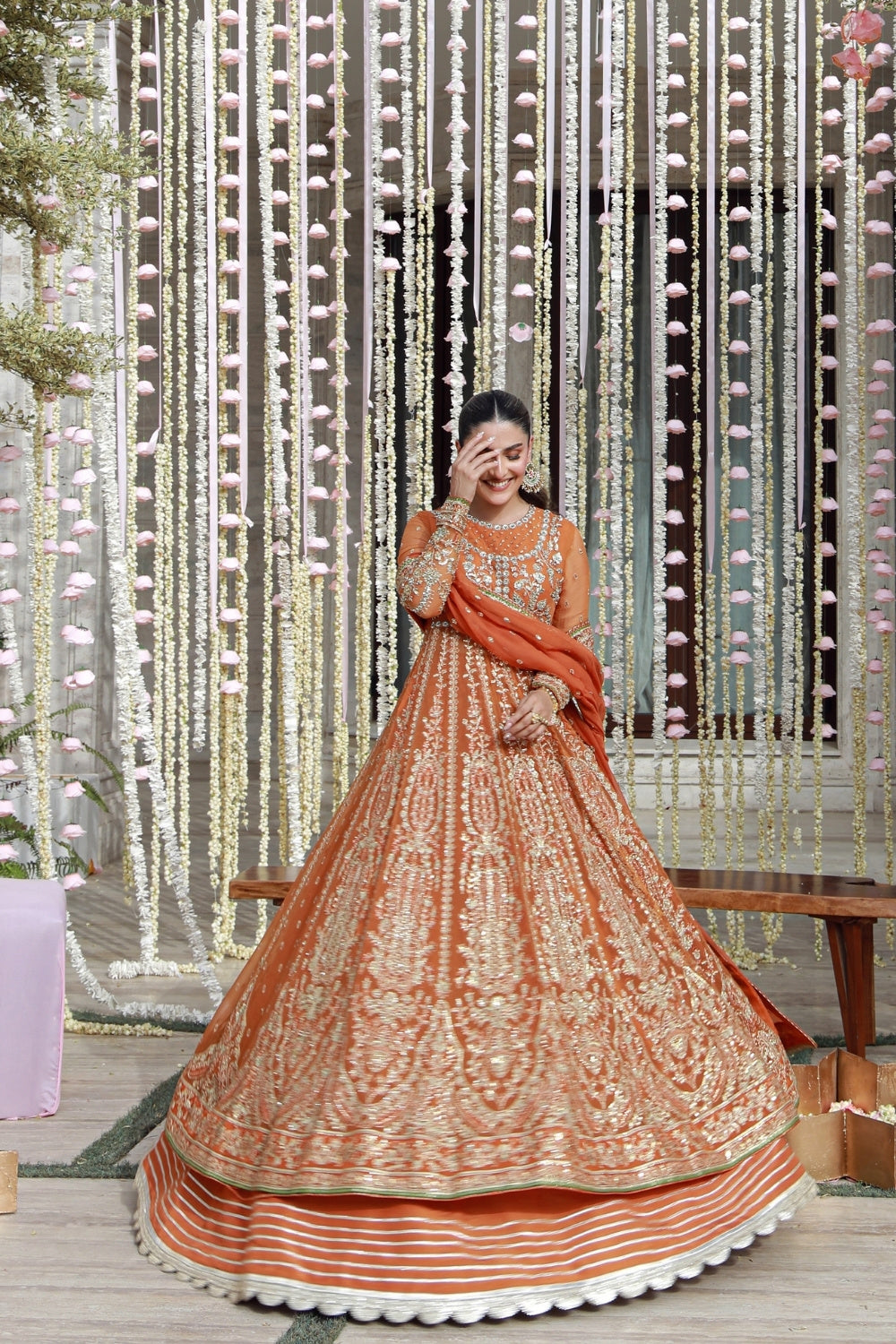 Embroidered Front + Back Hem Border on Organza