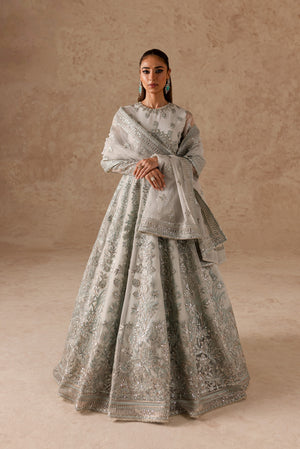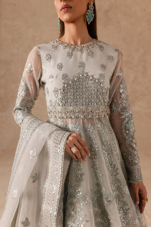 Step into the world of elegance with this stunning hand-embellished formal dress, adorned with intricate Dabka, Naqshi, Kashti, and delicate Bethki work. The ensemble is further enhanced by the shimmering beauty of Kanch Moti, Phool Sitara, and Drops, while Pearls and Cutt Dana add a touch of timeless sophistication.