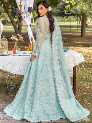 This exquisite choli is a masterpiece of craftsmanship, featuring intricate embroidery and lavish embellishments on the front, crafted from delicate net fabric. The back is equally adorned with detailed embroidery, adding depth and elegance to the design. The lehenga's front panels are richly embroidered and embellished, creating a mesmerizing visual appeal. Completing the look, with similar embroidered panels on lehnga back. The embellishment on sleeves has been worked with various methods and practical 3D skills which enough to make this pair look different and outstanding among others.