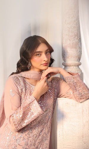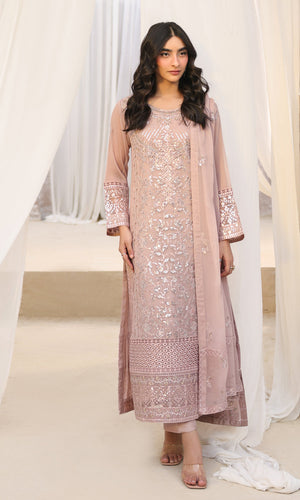 Lamhay By Shamooz Unstitched 3 Piece Luxury Chiffon Formals Suit-Tea Rose SU-158