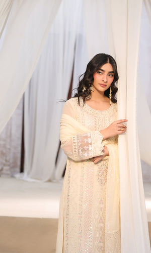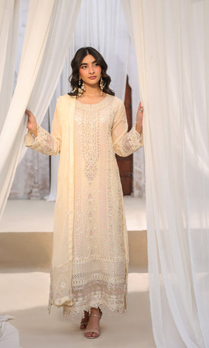 Lamhay By Shamooz Unstitched 3 Piece Luxury Chiffon Formals Suit-Soft Ivory SU-159