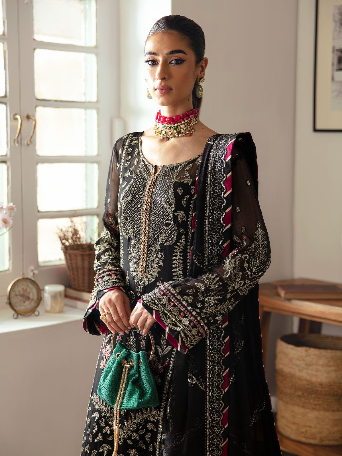 Gulaal Unstitched 3 Piece Emb Chiffon Vol-01 Suit-Noir GL-EC-23V1-06