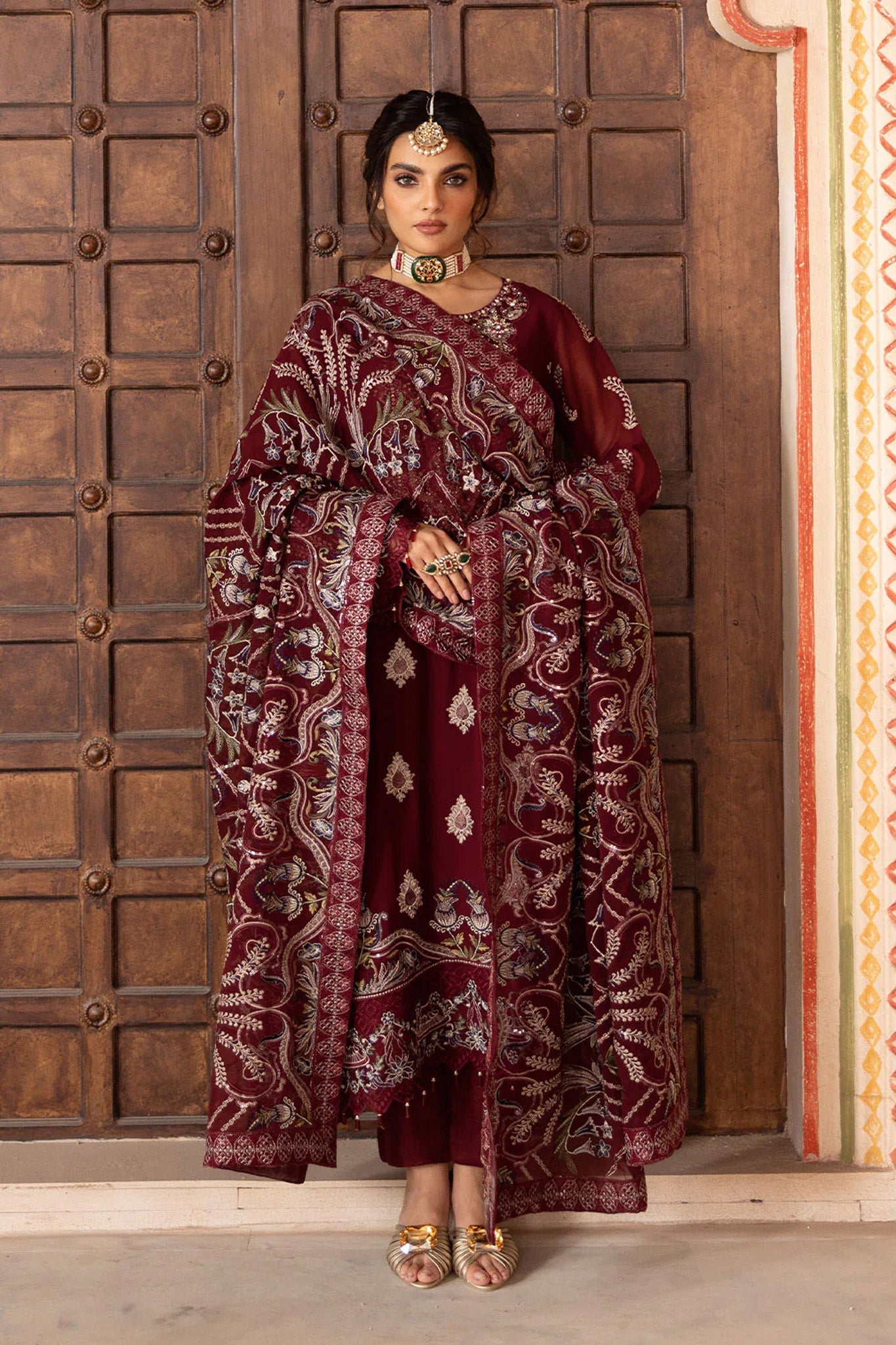 - Embroidered Chiffon Front with Sequence